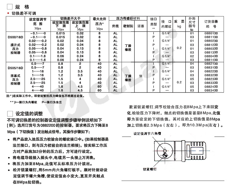 0883100,0883300,0883200,0883400,壓力開關(guān)D505/18D系列 法蘭