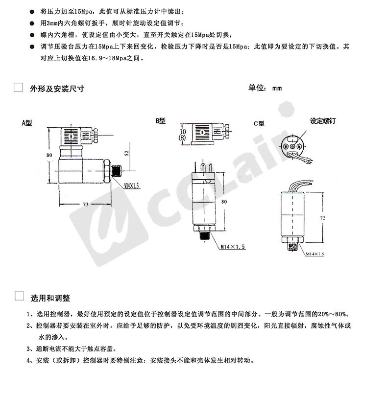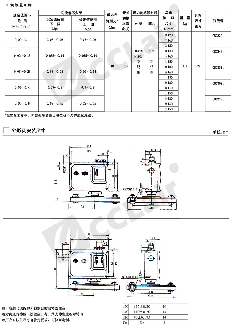 0881100,0881300,0881200,0881400,壓力控制器D500/18D系列 法蘭