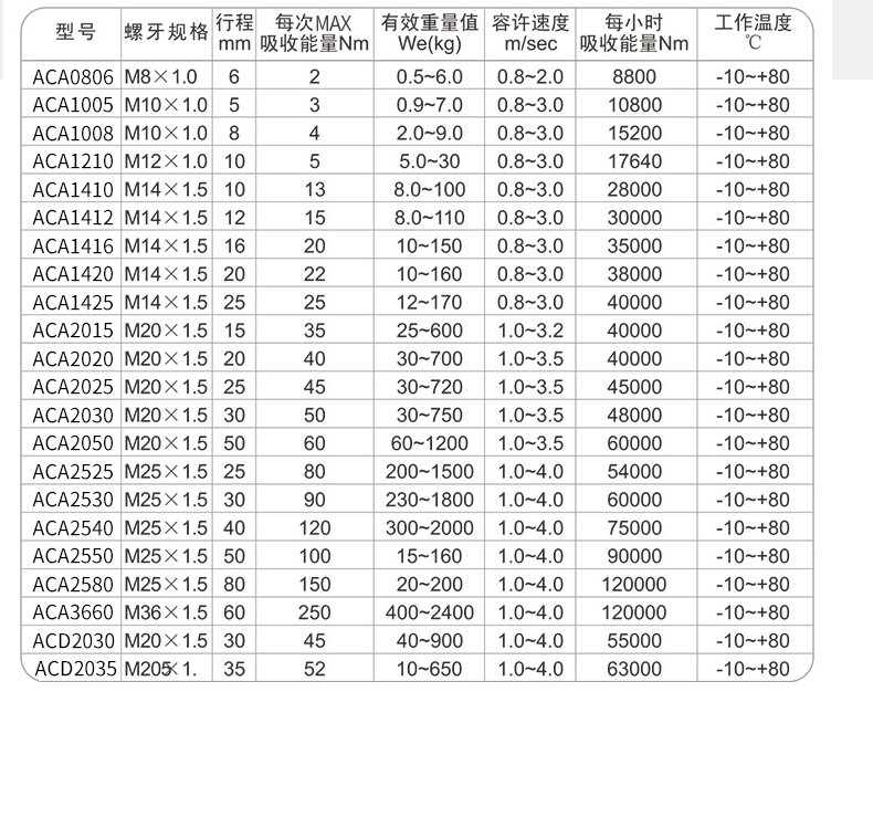 ACJ1007,ACJ2020,ACJ3325,ACJ1210,ACJ1412,ACJ2550,ACJ3625,ACJ2725,ACJ3650,ACJ2750,ACJ2525,ACJ3350,ACJ可調(diào)式緩沖器