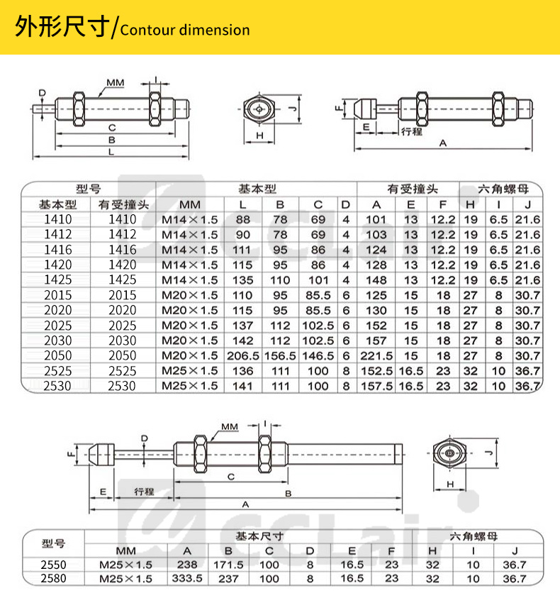 C-MAKC0806,C-MAKC1005,C-MAKC1008,C-MAKC1210,C-MAKC1412,C-MAKC2020,油壓緩沖器C-MAKC不可調(diào),米思米型