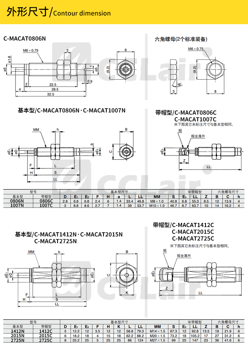 C-MAKC0806,C-MAKC1005,C-MAKC1008,C-MAKC1210,C-MAKC1412, C-MAKC2020,油壓緩沖器C-MAKC不可調(diào)