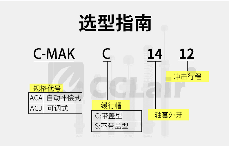 C-MAKS0806,C-MAKS1005,C-MAKS1008,C-MAKS1210,C-MAKS1412,C-MAKS2020,油壓緩沖器C-MAKC無緩沖頭