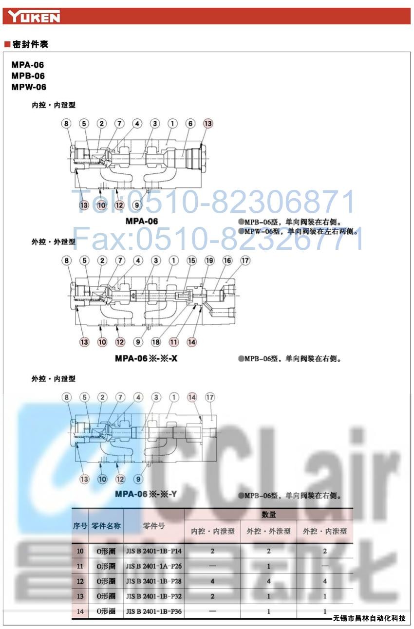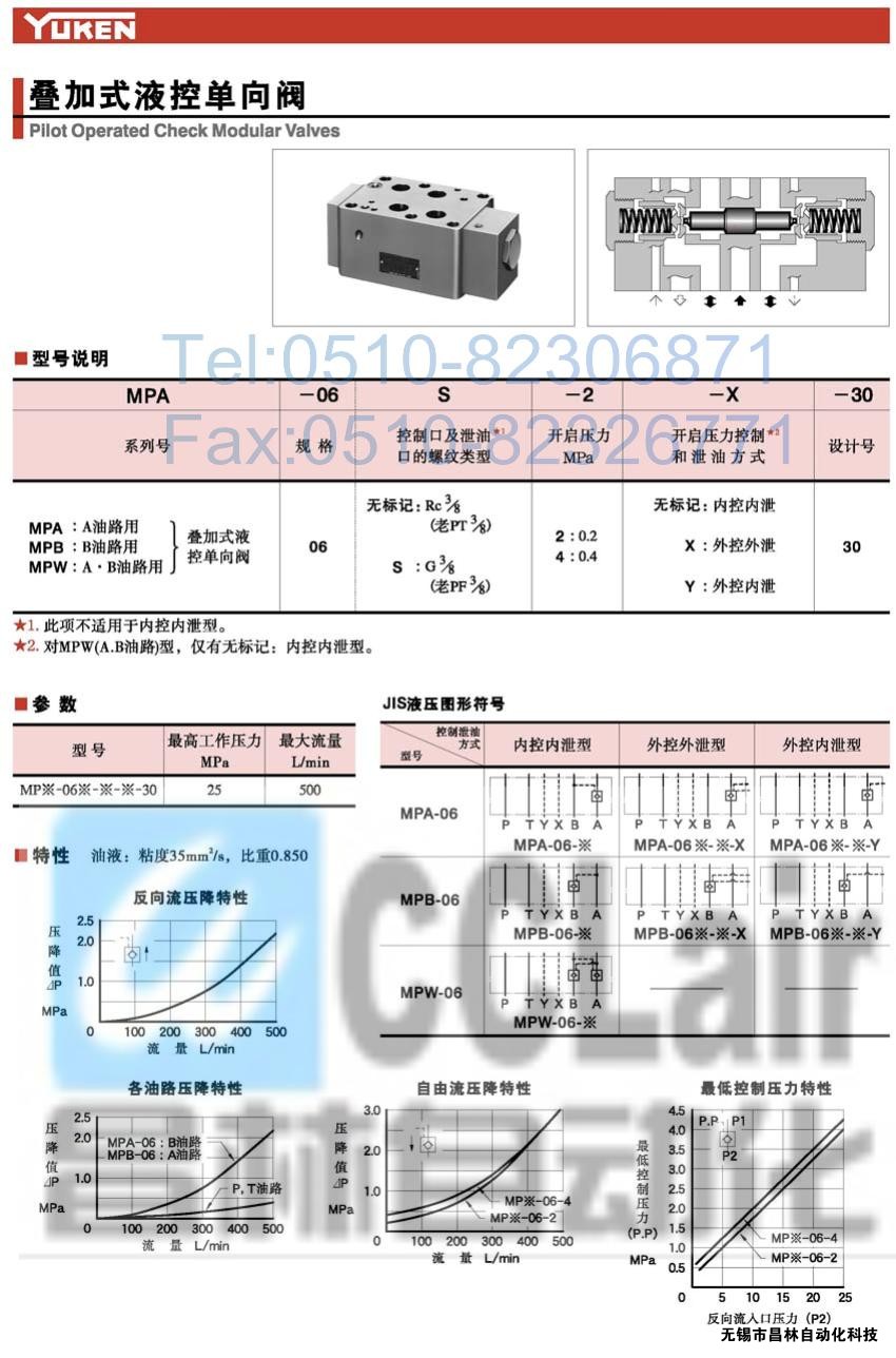 MPB-06S-4-X-30,MPB-06S-4-Y-30,MPW-06S-2-X-30,疊加式液控單向閥,榆次油研YUKEN疊加式液控單向閥