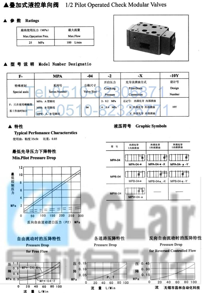 MPB-04-4-X-10Y,MPB-04-4-Y-10Y,MPW-04-2-X-10Y,疊加式液控單向閥,榆次油研疊加式液控單向閥,YUKEN疊加式液控單向