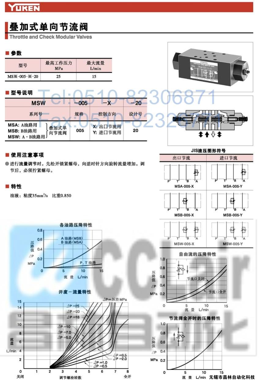 MSW-005-X-20,MSW-005-Y-20,MSA-005-X-20,疊加式單向節(jié)流閥,榆次油研疊加式單向節(jié)流閥,YUKEN疊加式單向節(jié)流閥