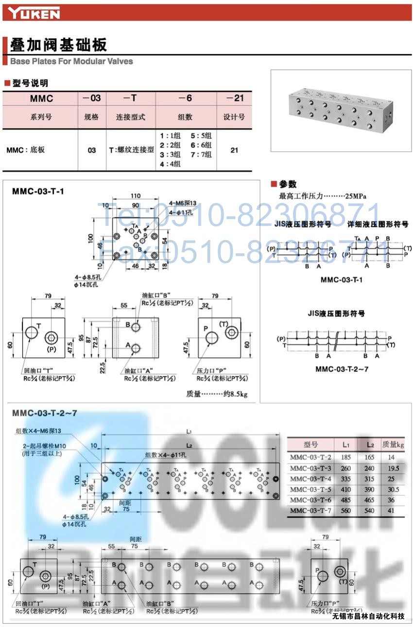 MMC-03-T-6-21,MMC-03-T-1-21,MMC-03-T-2-21,疊加閥基本板,榆次油研疊加閥基礎(chǔ)板,YUKEN疊加閥基礎(chǔ)板