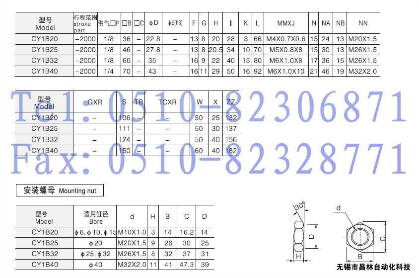 CY1B20-350,CY1B20-400,CY1B20-450,CY1B20-500,CY1B20-600,CY1B20-700,磁耦式無桿氣缸