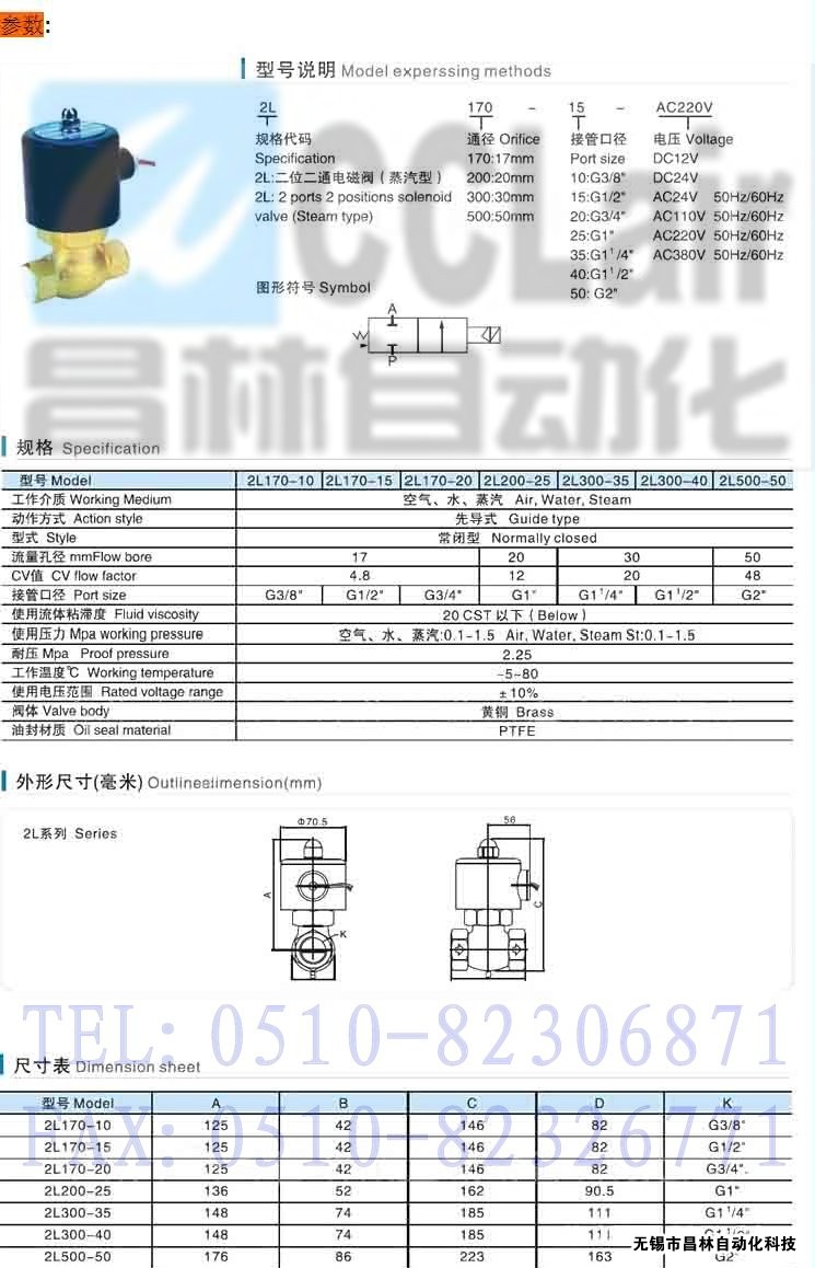 2L170-25,2L170-35,2L170-40,2L170-50,二位二通電磁閥
