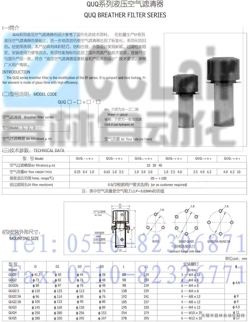 QUQ2.5-40*1.0,QUQ2.5-40*2.0,QUQ2.5-40*3.0,QUQ3-40*1.0,QUQ3-40*2.5液壓空氣濾清器