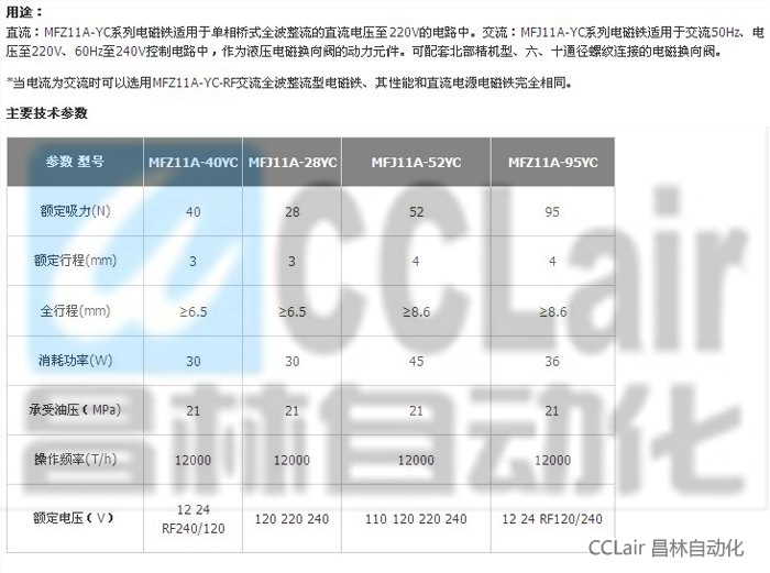 MFZ11A-40YC,MFZ11A-95YC,直流濕式閥用電磁鐵,生產(chǎn)廠家,價格