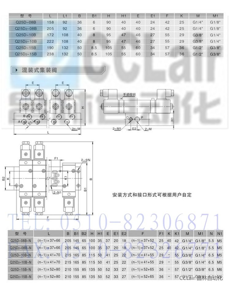 Q25D-08B-N,Q25D-10B-N,Q25D-15B-N,Q25D2-08B-N,Q25D2-10B-N,Q25D2-15B-N,二位五通電磁換向閥(集裝閥)