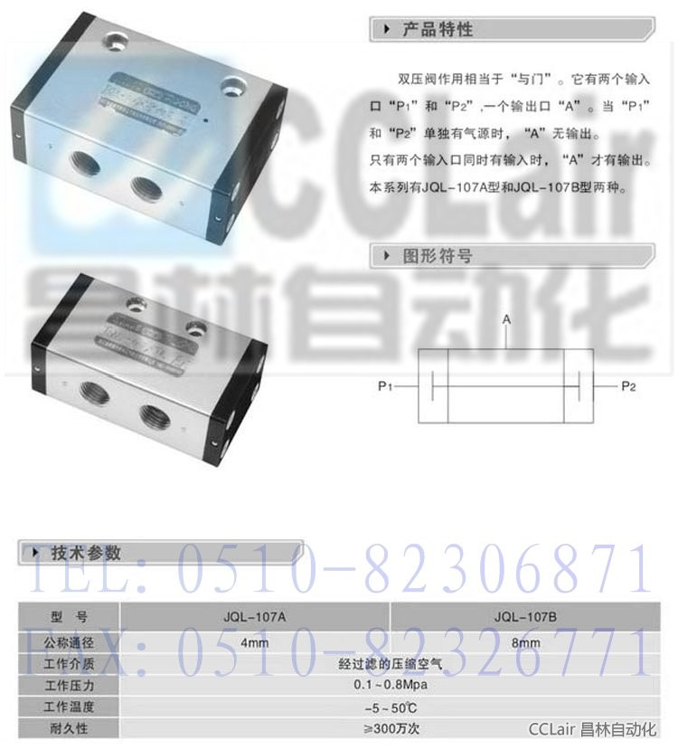 JQL—107A,JQL—107B,雙壓閥(與門)