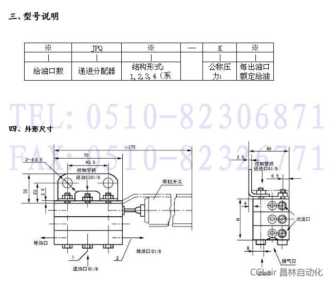 1、分配器為單柱塞多片組合結(jié)構(gòu),每片有兩個(gè)出油口,分為JPQ1、JPQ2、JPQ3 和JPQ4四種形式。 六、訂貨須知 |