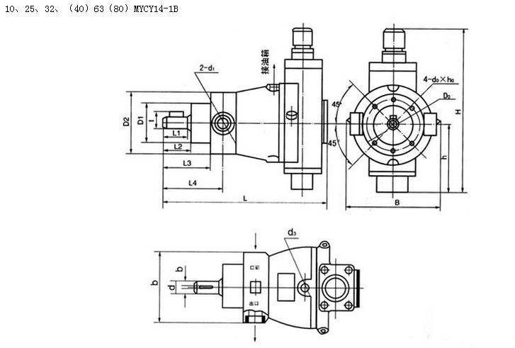 表示:排量為63毫升/轉(zhuǎn),壓力為31.5MPa的手動變量的缸體旋轉(zhuǎn)的軸向柱塞油泵。