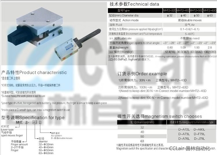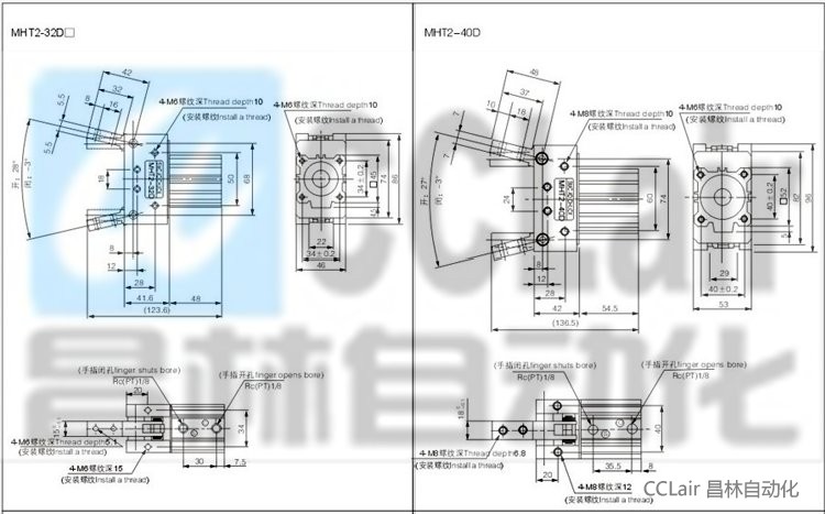 MHT2-32D,MHT2-40D,MHT2-50D,MHT2-63D,杠桿式氣動手指