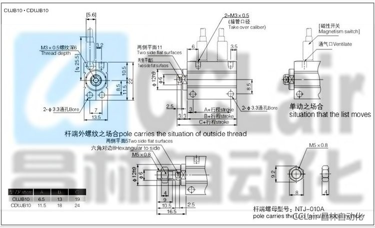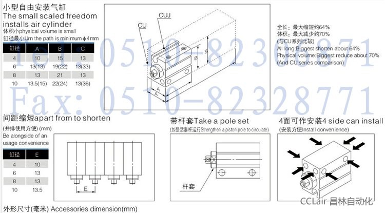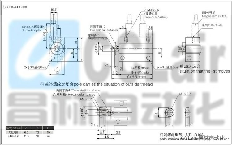 CUJB4-4,CUJB4-6,CUJB4-8,CUJB4-10,CUJB6-4,CUJB6-6,CUJB6-8,CUJB6-10,自由安裝型氣缸,生產廠家,價格