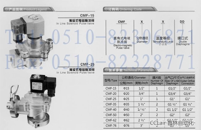 CMF-15,CMF-20,CMF-25,CMF-35,CMF-40,CMF-50,CMF-62,CMF-76,淹沒式電磁脈沖閥