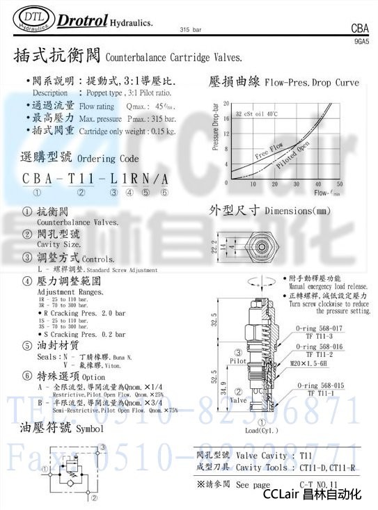 CBA-T11-L1SV/A,CBA-T11-L1SV/B,CBA-T11-L3SV/A,CBA-T11-L3SV/B,磐龍插式抗衡閥,