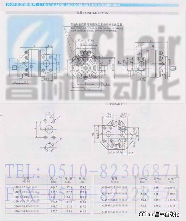 G20a-6B7B-3AR,G20a-6B7B-3BR,G20a-6B7B-3CR,G20a-6B7B-3DR,高壓齒輪泵,