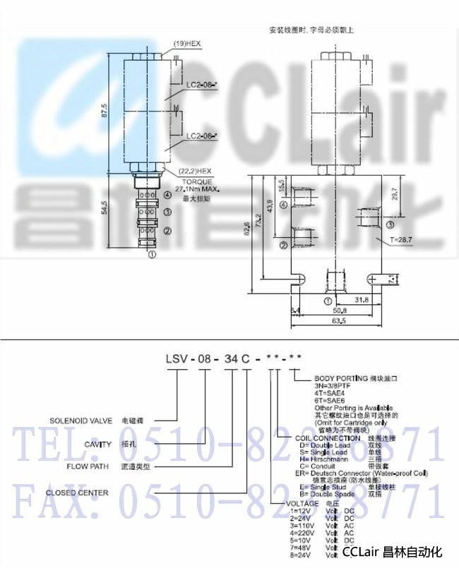 LSV-08-34C-4E,LSV-08-34C-3E,LSV-08-34C-2E,LSV-08-34C-1E,三位四通電磁閥,