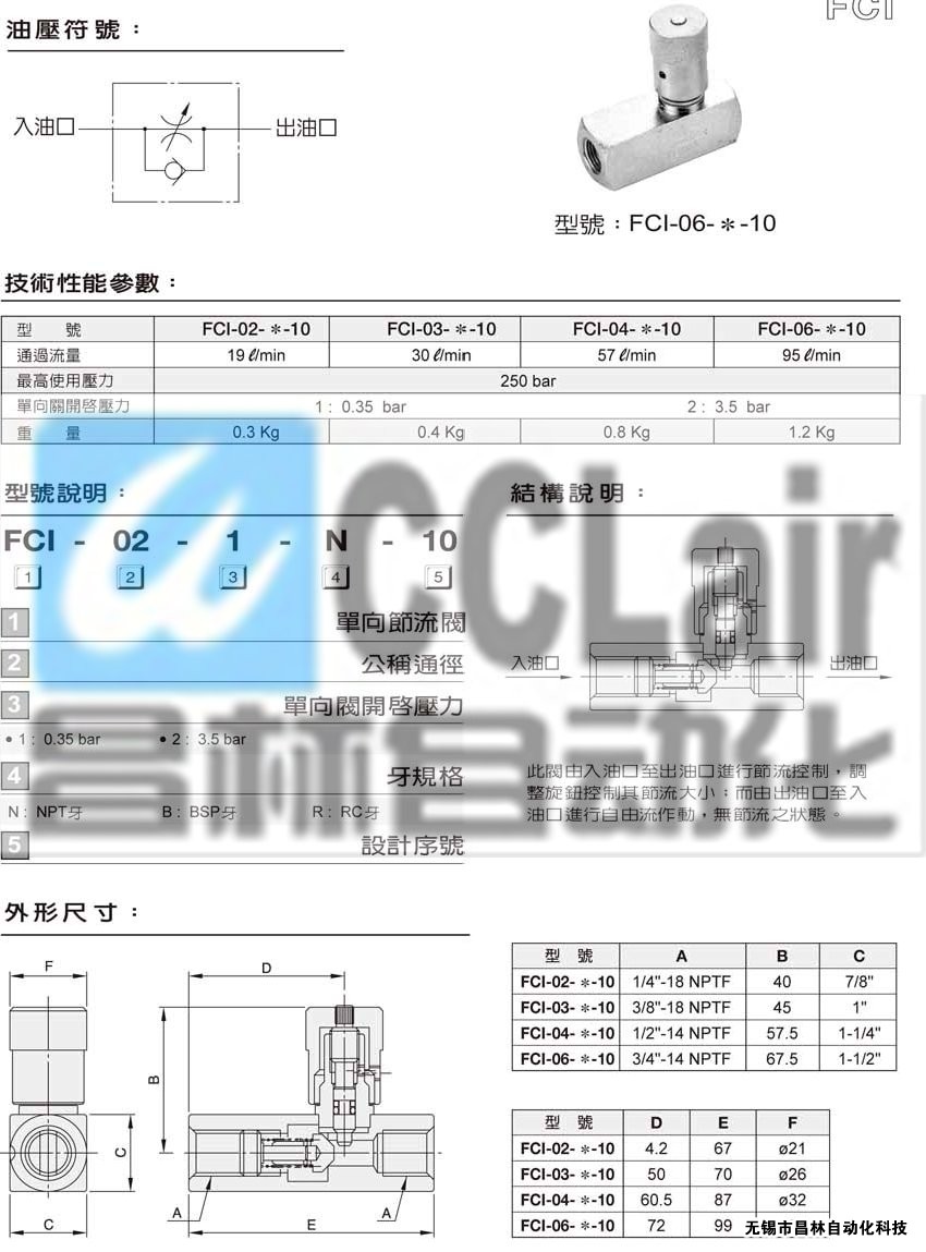 FCI-03-1-N-10,FCI-03-1-B-10,FCI-03-1-R-10,FCI-03-2-N-10,FCI-03-2-B-10,單向節(jié)流閥,生產(chǎn)廠家,價(jià)格