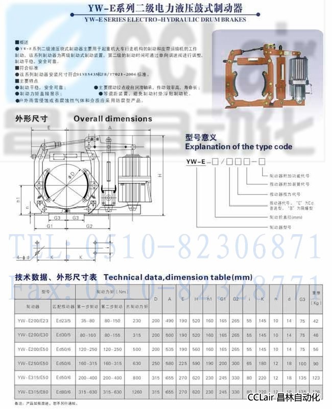 YW-E200,YW-E250,YW-E315,YW-E400,二級電力液壓鼓式制動器