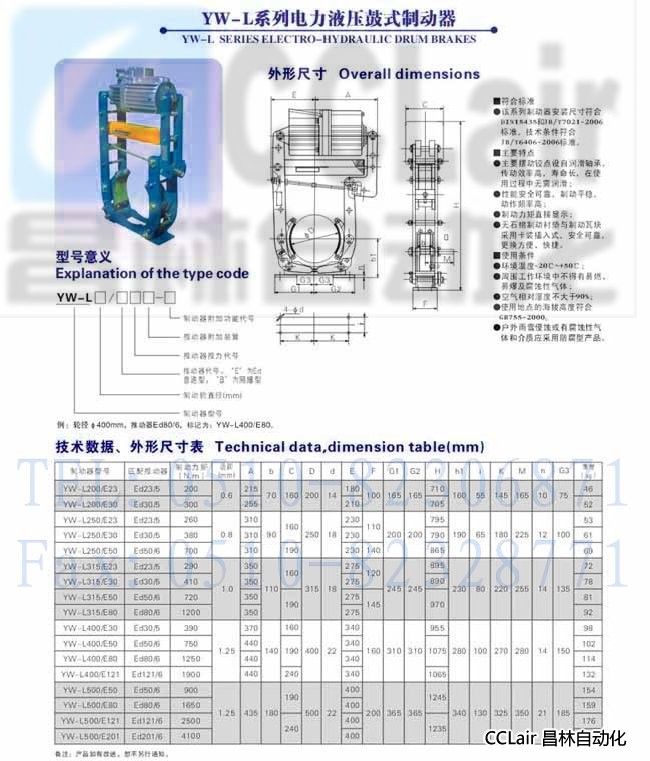 YW-L500/E50,YW-L500/E80,YW-L500/E121,YW-L500/E201,電力液壓鼓式制動器