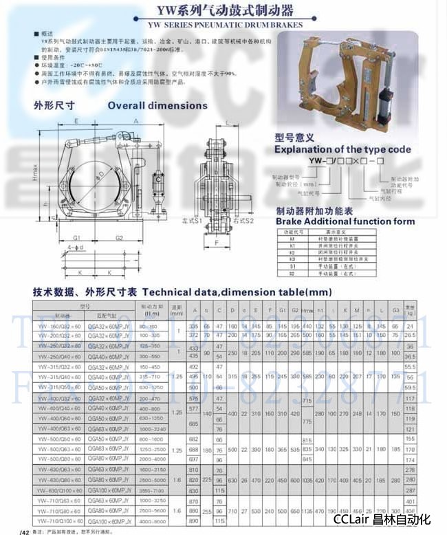YW-630/Q80×60,YW-630/Q100×60,YW-710/Q63×60,氣動(dòng)鼓式制動(dòng)器