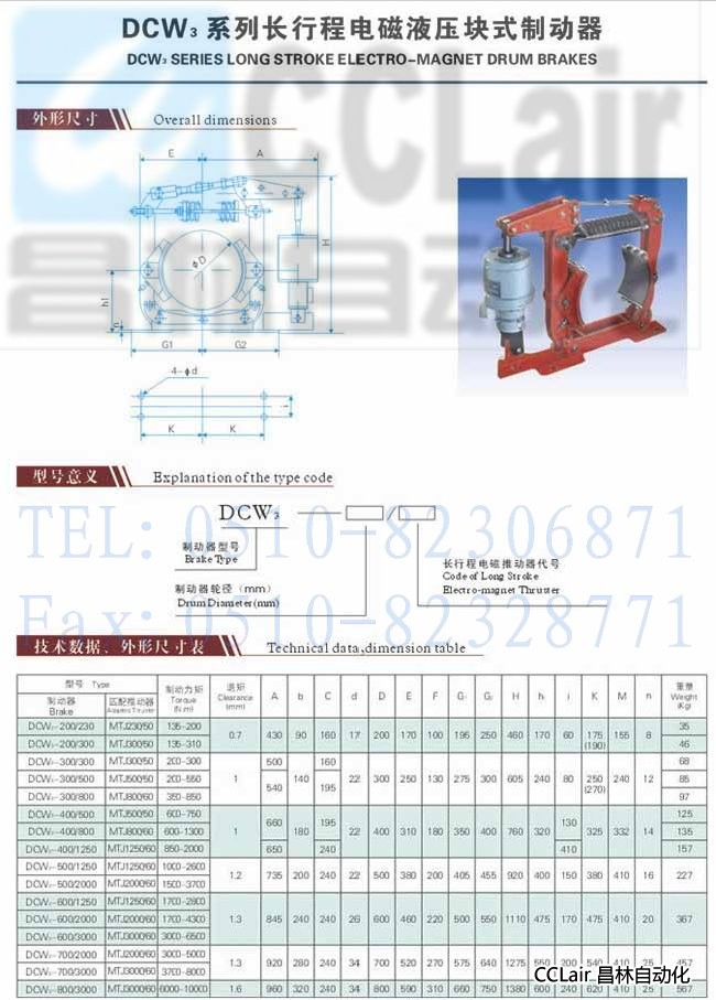 DCW3-600/3000,DCW3-700/2000,長(zhǎng)行程電磁液壓塊式制動(dòng)器