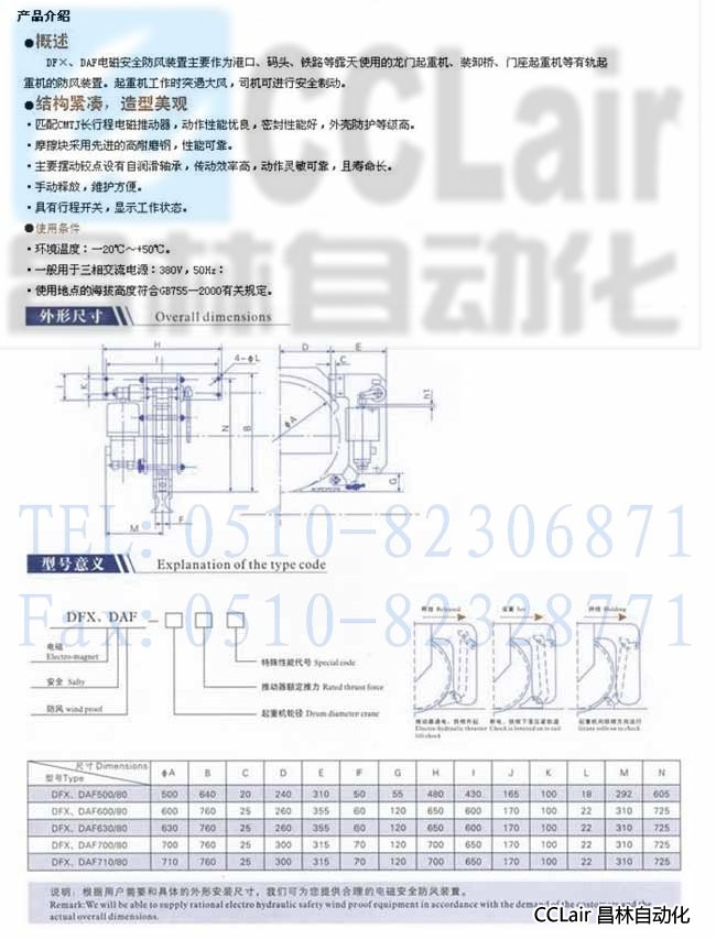 DFX700/80,DFX710/80,DAF700/80,DAF710/80,電磁液壓安全防風(fēng)鐵楔制動(dòng)器