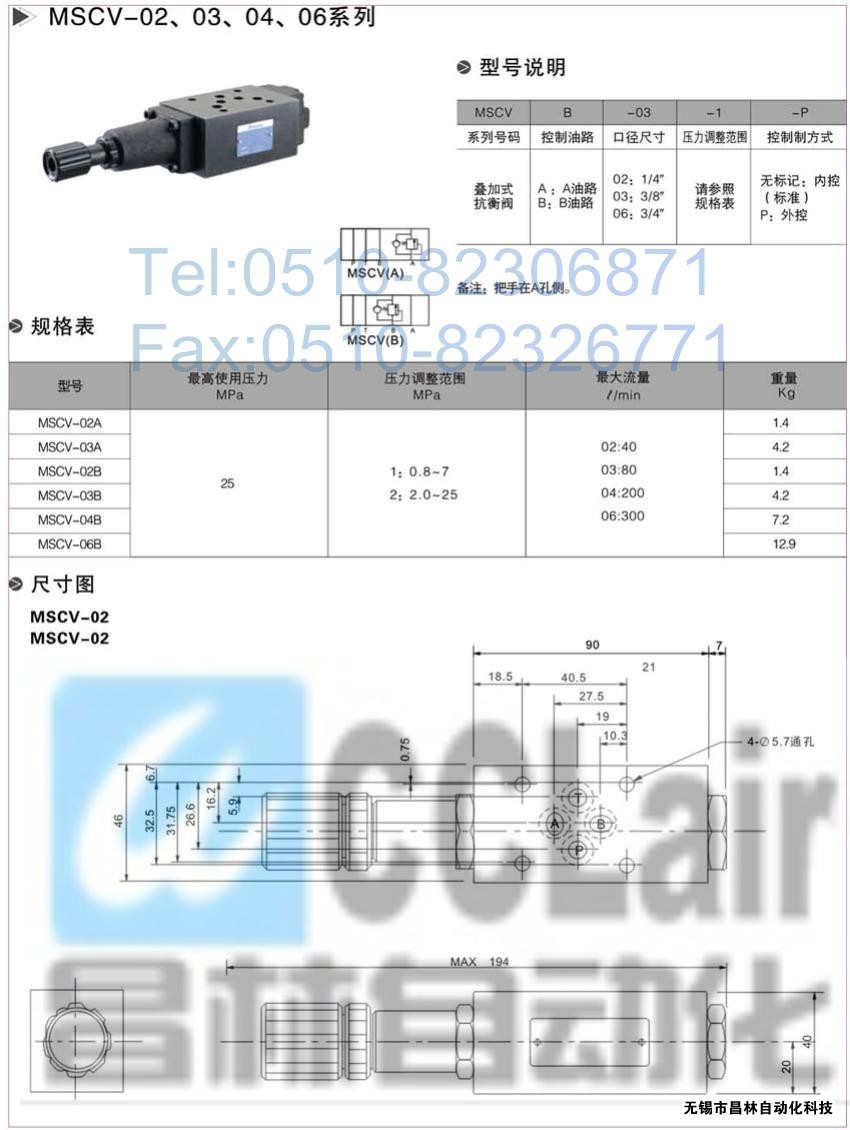 MSCV-02A,MSCV-03A,MSCV-02B,疊加式抗衡閥