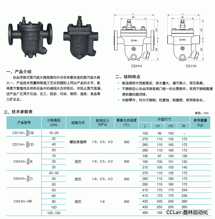 CS11H-16-3NL,CS11H-25-3NL,CS11H-40-3NL,CS41H-16-3NL,CS41H-25-3NL,CS41H-40-3NL,自由浮球式蒸汽疏水閥 |