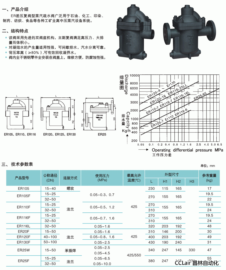 ER105,ER105F,ER110F,ER116F,ER116L,ER20F,ER120F,ER130F,ER25W,ER25F,差壓復(fù)閥鐘型浮子式蒸汽疏水閥