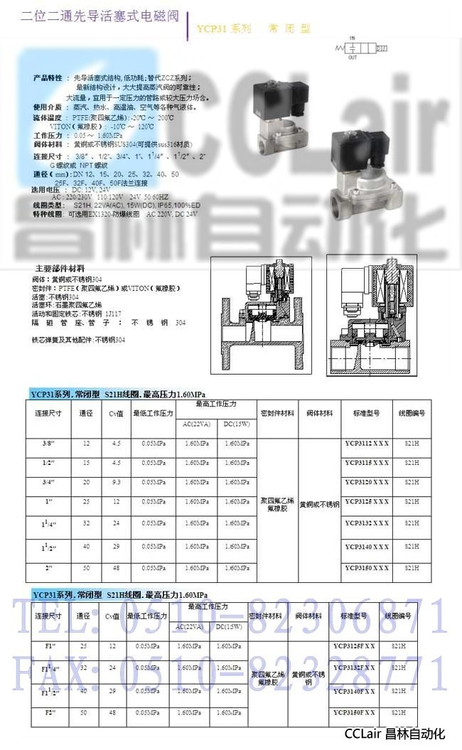 YCP3112,YCP3115, YCP3120,YCP3125,YCP3132,二位二通先導(dǎo)活塞式電磁閥