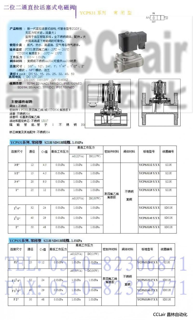 YCPS3112,YCPS3115, YCPS3120, YCPS3125, YCPS3132, YCPS3140 二位二通直拉活塞式電磁閥 ,價格