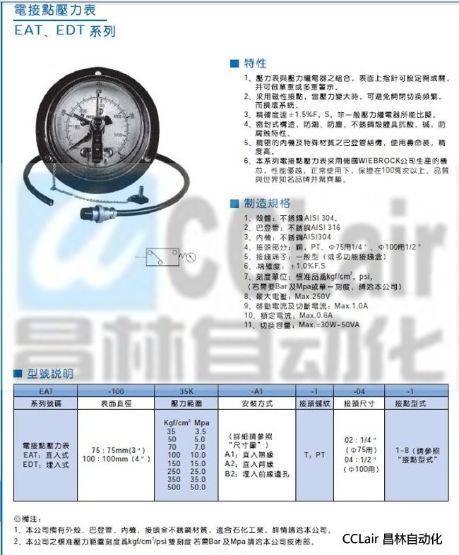 EAT-100,EDT-100,EAT-75,EDT-75, 電接點壓力表,價格