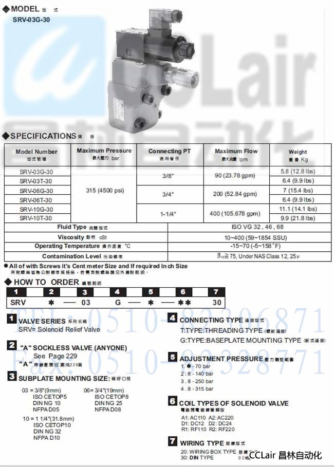 SRV-10G-30,SRV-10T-30,SRV-06T-30,電磁式溢流閥,