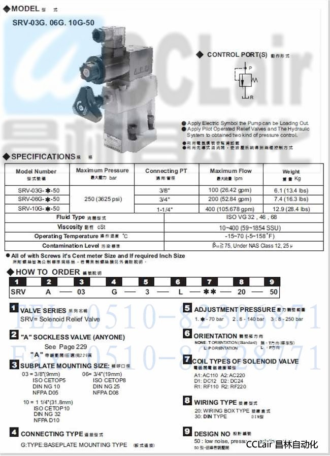 SRV-03G-50,SRV-06G-50,SRV-10G-50,電磁式溢流閥,