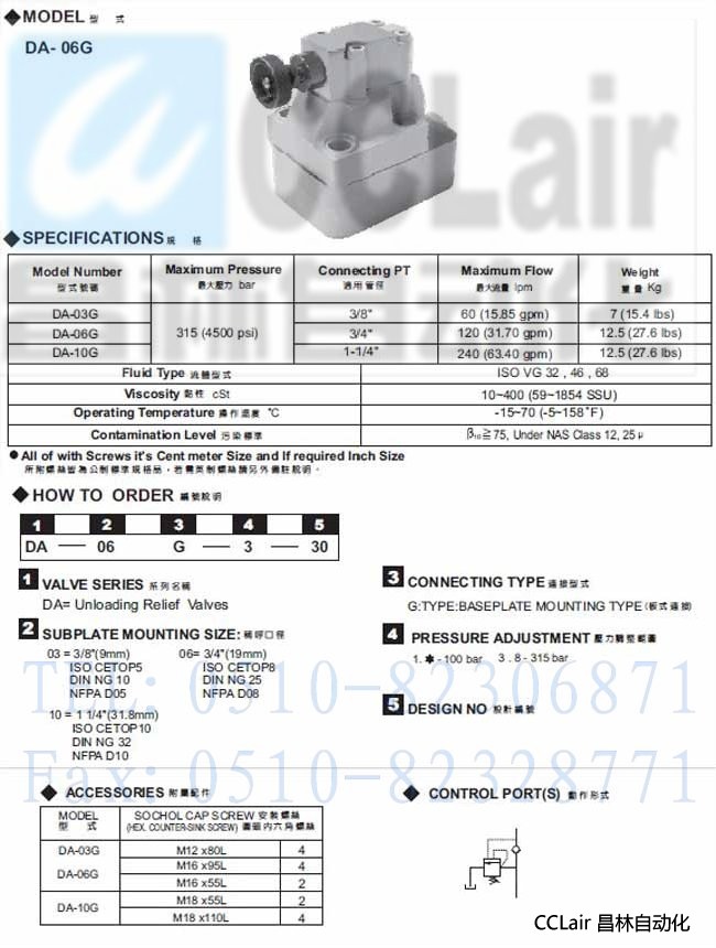 DA-03G,DA-06G,DA-10G,卸荷溢流閥,