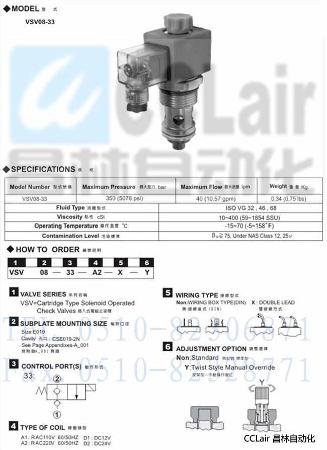 VSV08-33, 插入式電磁閥,