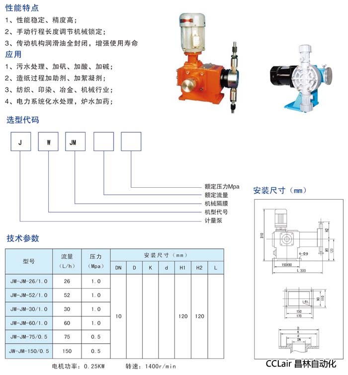 JW-JM-26/1.0,JW-JM-52/1.0,JW-JM-30/1.0,機(jī)械隔膜計(jì)量泵