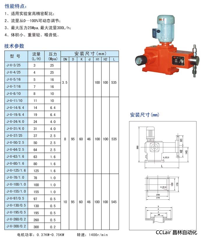 J-X-50/2.5,J-X-64/2.5,J-X-63/1.6,J-X-80/1.6,J-X-125/1.6,柱塞計量泵