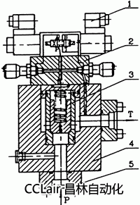 2 、控制蓋板 —— 由蓋板內(nèi)嵌微型先導控制元件(節(jié)流螺塞)以及其它零件等構成。它主要用來固定插裝件并保證密封;溝通控制油路和主閥控制腔之間的聯(lián)系,并實施控制。