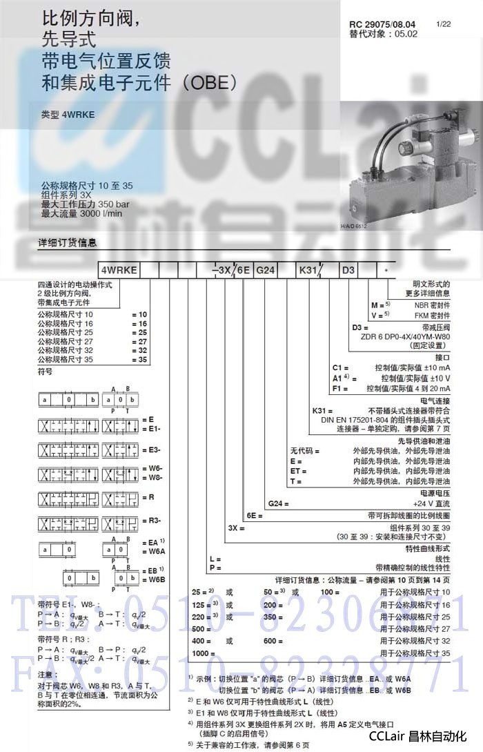 4WRKE10E1-100L-3X/6EG24TK31/A1D3M,4WRKE10E1-100P-3X/6EG24EK31/A1D3M, 比例方向閥,力士樂REXROTH,德國(guó)力士樂,價(jià)格