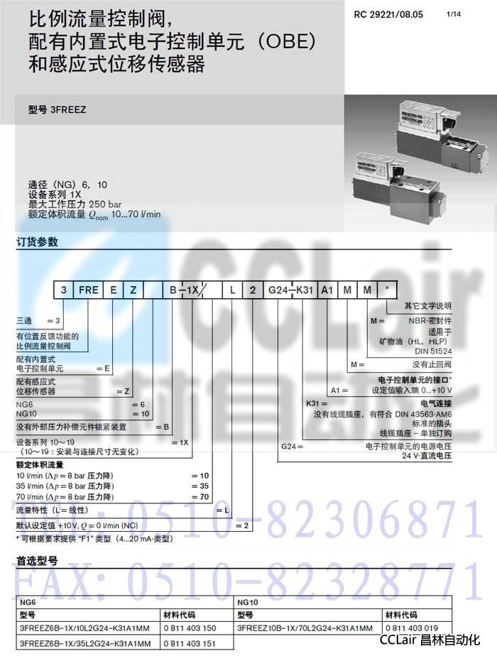 3FREEZ6B-1X/35L2G24-K31A1MM,3FREEZ6B-1X/70L2G24-K31A1MM,,比例流量控制閥,力士樂REXROTH,德國力士樂