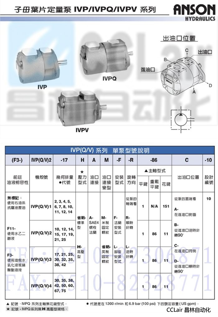 IVPV4-30-F-R-1A-10,IVPV4-35-F-R-1A-10,IVPV4-38-F-R-1A-10,IVPV4-42-F-R-1A-10,子母葉片泵(單泵)