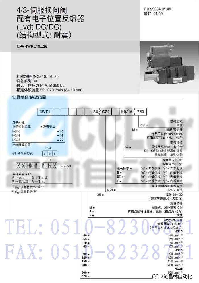 4WRL16V1-120M-3X/G24K0/M-750,4WRL10V85M-3X/G24K0/M-750, 先導(dǎo)式方向控制閥,力士樂REXROTH,德國力士樂 |