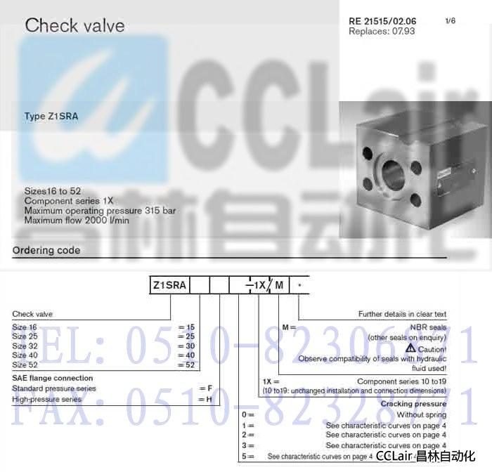 Z1SRA15F1-1X/M,Z1SRA15F2-1X/M,Z1SRA15H1-1X/M,單向閥,力士樂REXROTH,德國力士樂