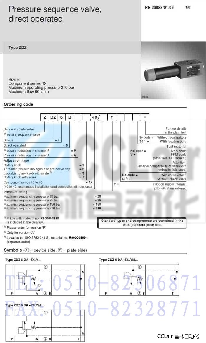 ZDZ6DP2-4X/210YM,直動(dòng)式壓力順序閥,力士樂REXROTH,德國(guó)力士樂