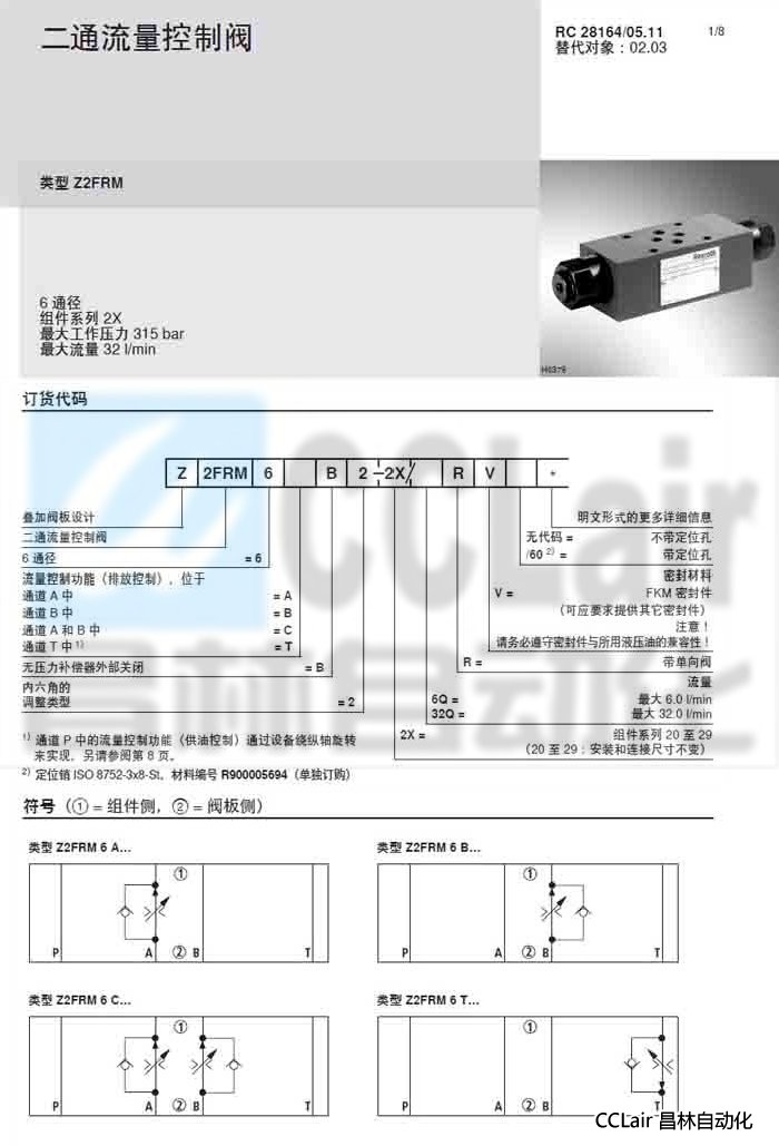 R900910912 Z2FRM6TB2-2X/6QRV,R900908807 Z2FRM6TB2-2X/32QRV 二通流量控制閥,力士樂REXROTH,德國力士樂 |